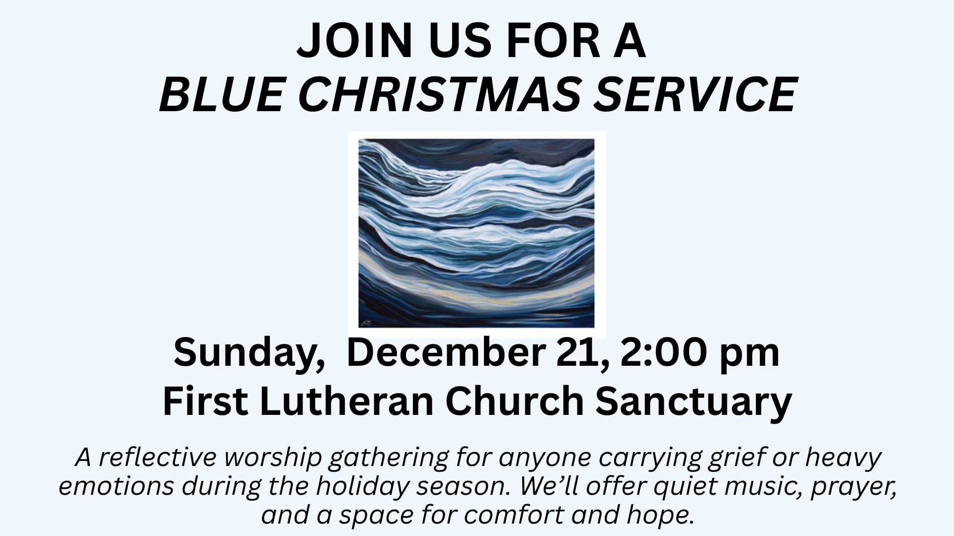 Our Blue Christmas Service is a reflective worship gathering for anyone carrying grief or heavy emotions during the holiday season. It offers quiet music, prayer, and a space for comfort and hope. All are welcome!