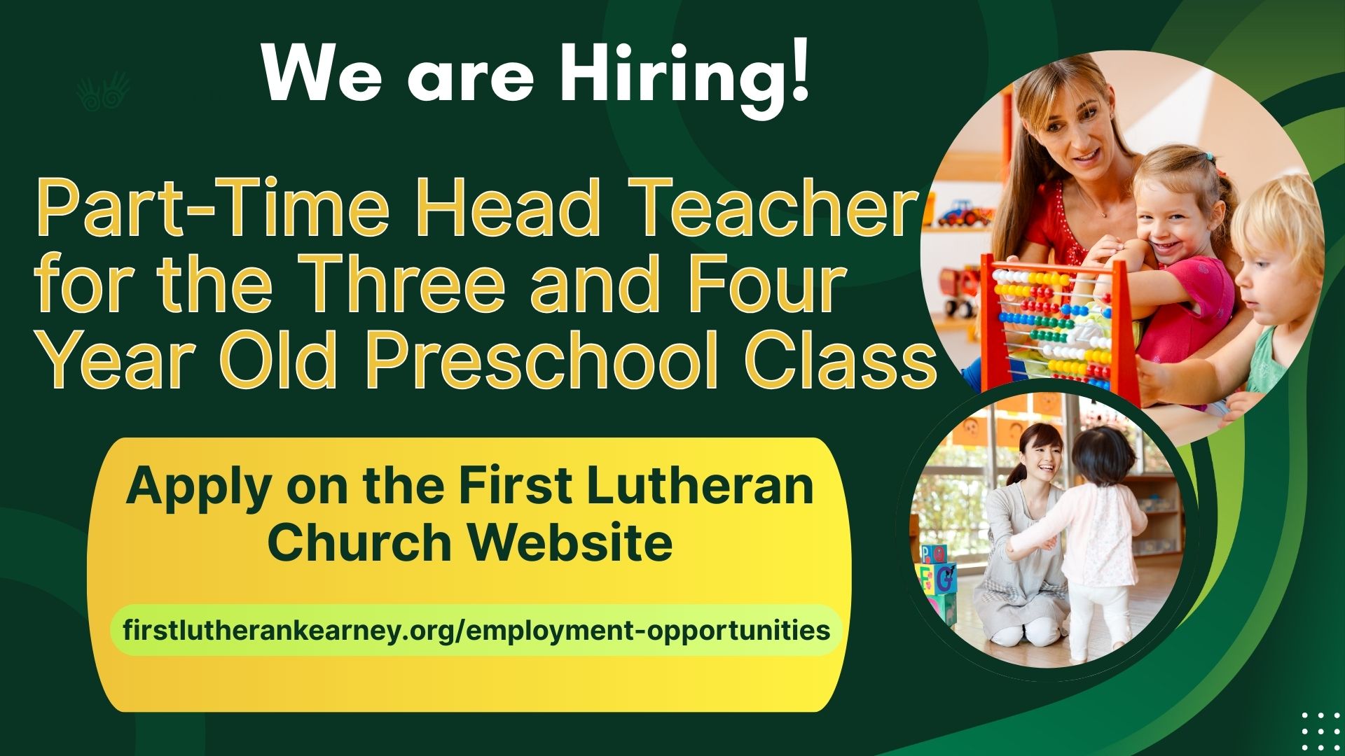 We are seeking a passionate and enthusiastic Head Teacher for the Three and Four Year Old Preschool Class to join our team. As a Pre-School teacher, you will be responsible for delivering high-quality, interactive, and age-appropriate lessons to a group of 3-4-year-old children who are gearing up to start their Pre-School Years. You will play a key role in helping young learners develop basic skills in literacy, numeracy, social interaction, and creativity in a supportive classroom environment. Apply HERE: